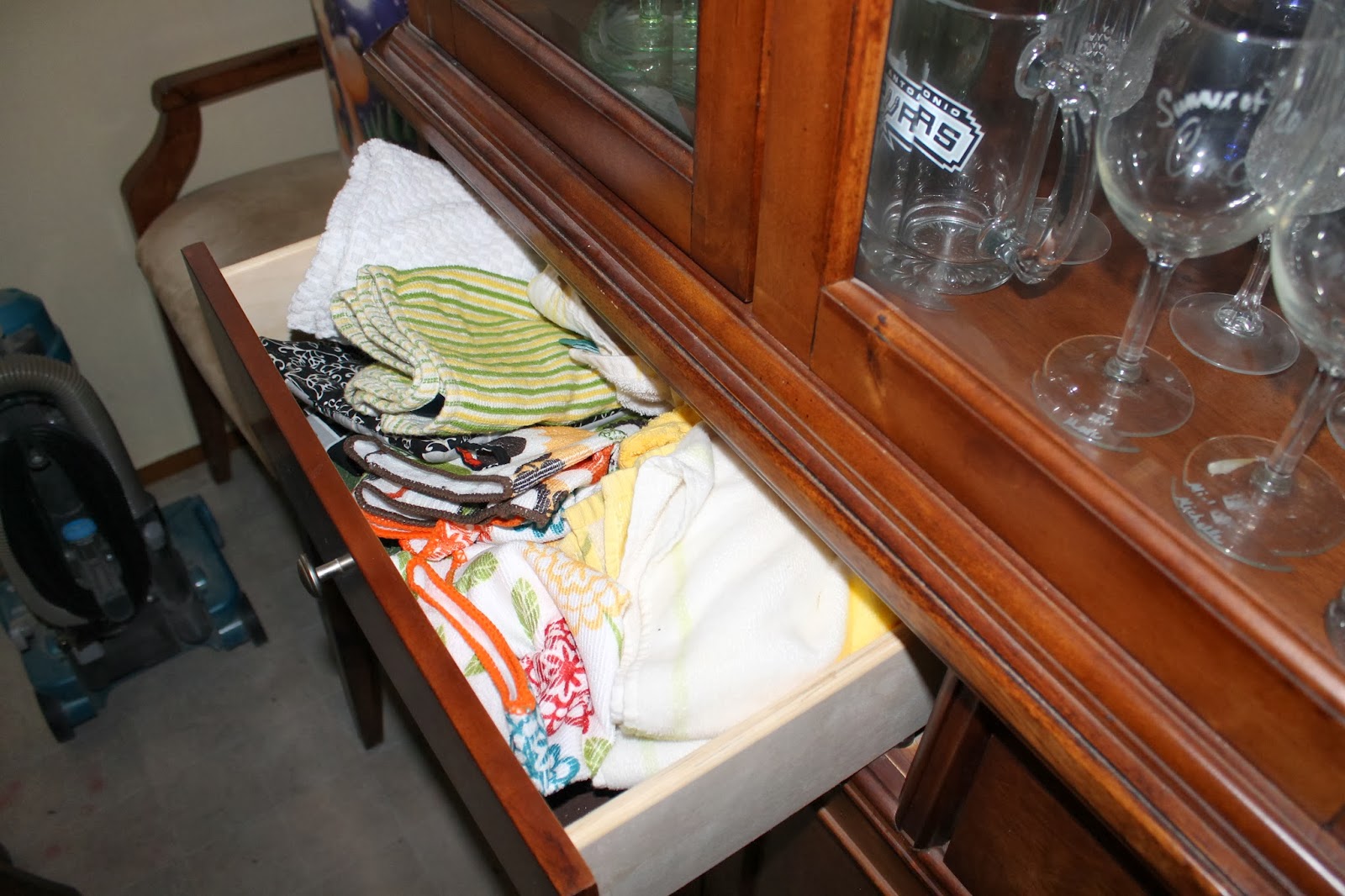 Another project happened while I was putting away all my Christmas dishes in the china cabinet in the kitchen. While the hutch was fairly organized..